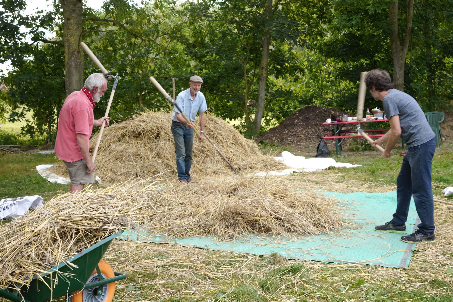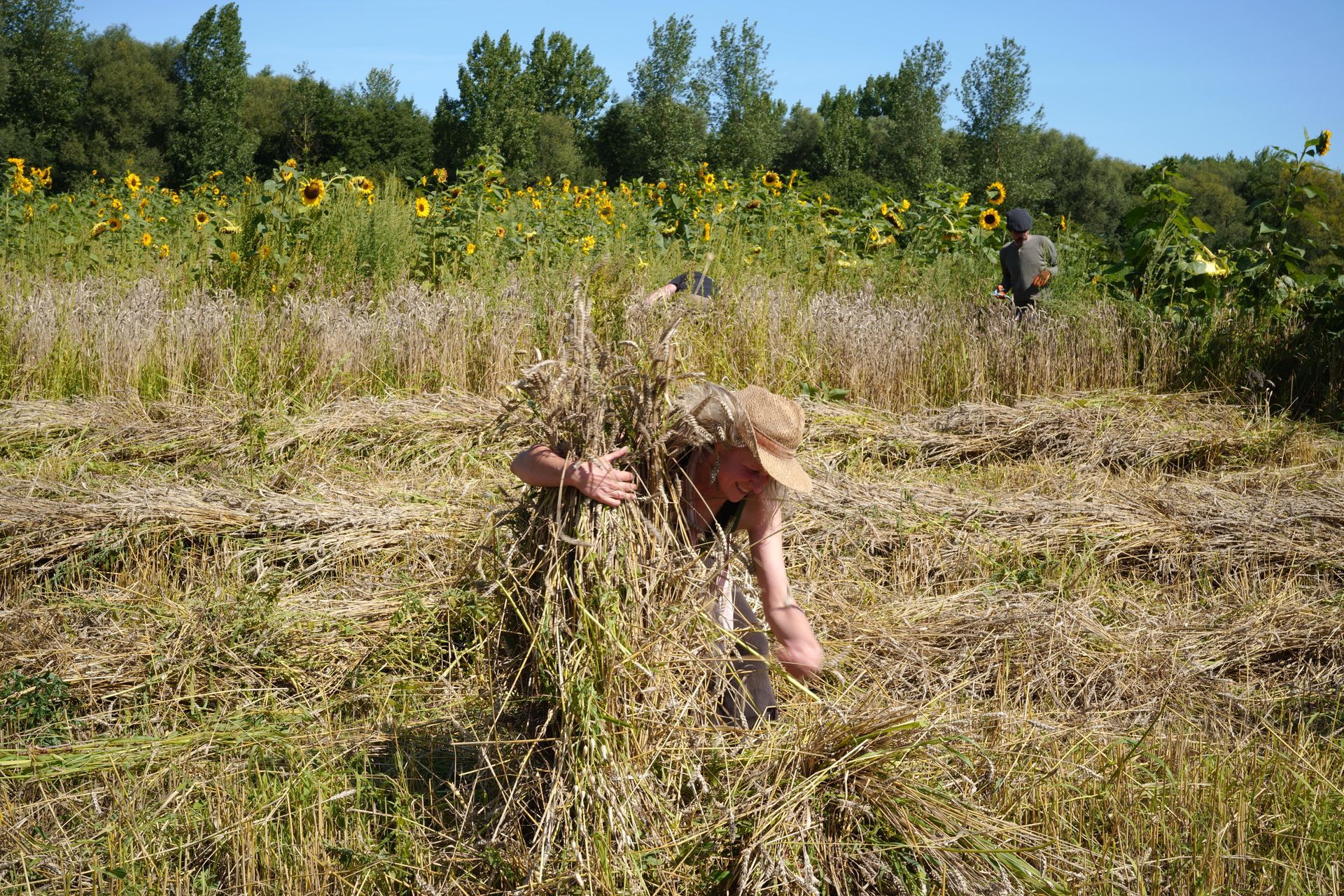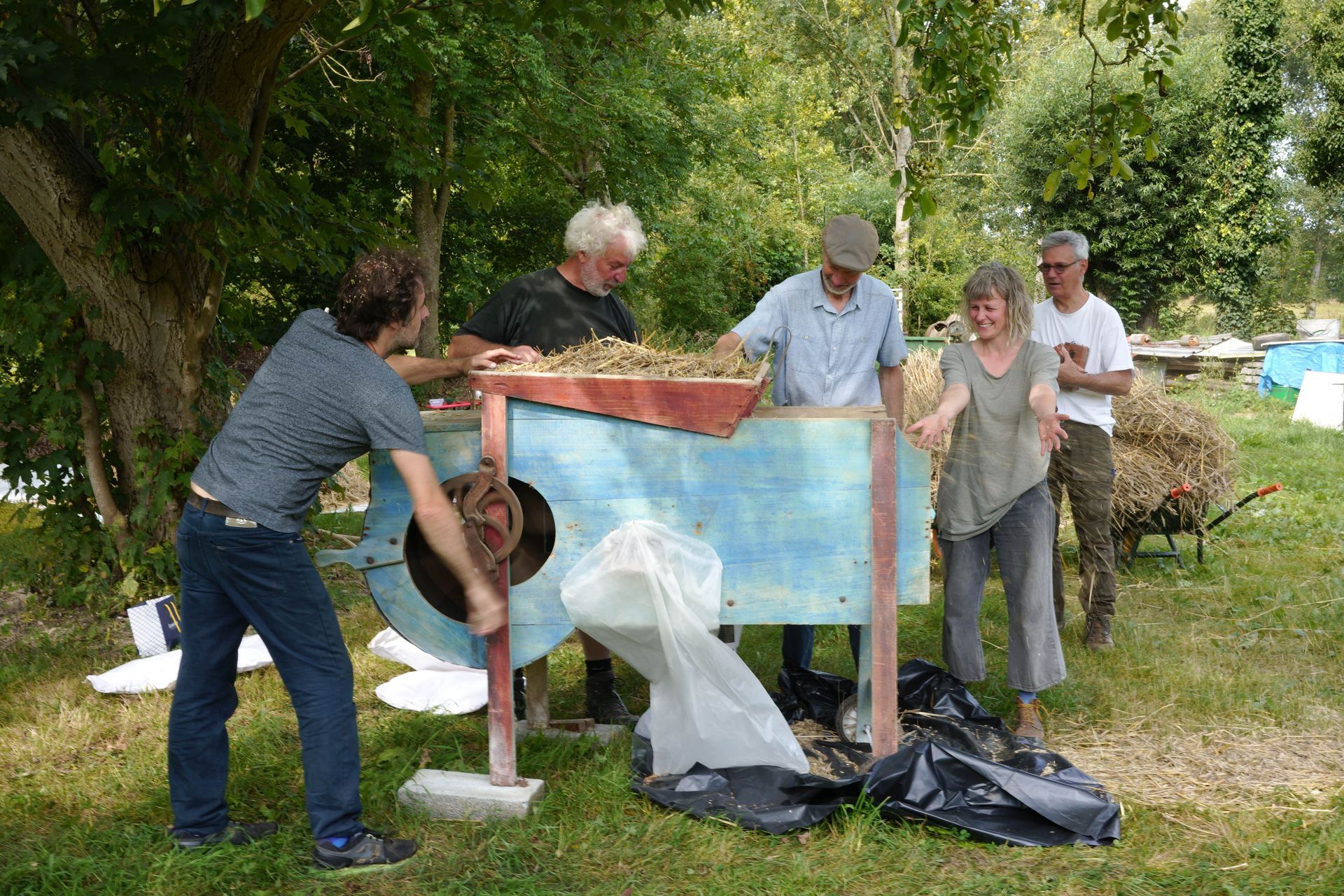 Bram van Cauwenberghe, Dirk Neuckermans en Justine Maxelon zijn kunstenaars, tuiniers, molenaars — en vooral gelukkig met aarde aan hun handen. Ze zaaien, oogsten, dorsen met de hand, malen in een watermolen en bakken in een oude broodoven.